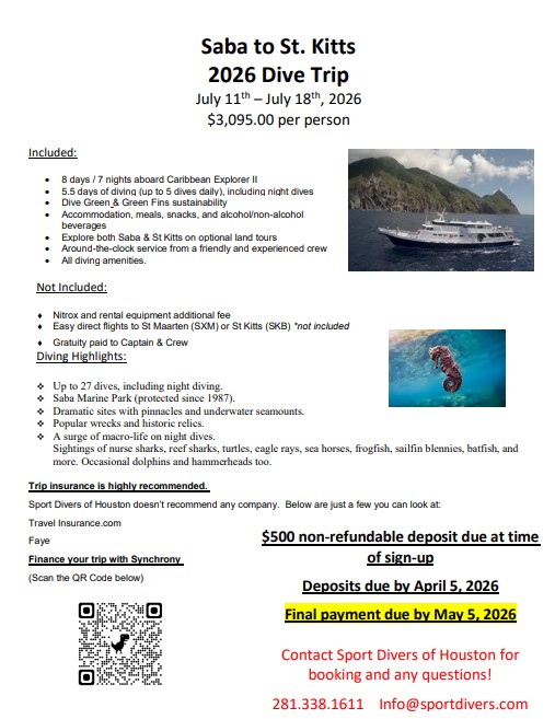 Get ready for the ultimate Caribbean adventure! Sport Divers of Houston is heading to the breathtaking waters of Saba and St. Kitts from July 11 – 18, 2026. This isn't just a dive trip; it’s a week-long immersion into some of the most dramatic underwater landscapes in the world.